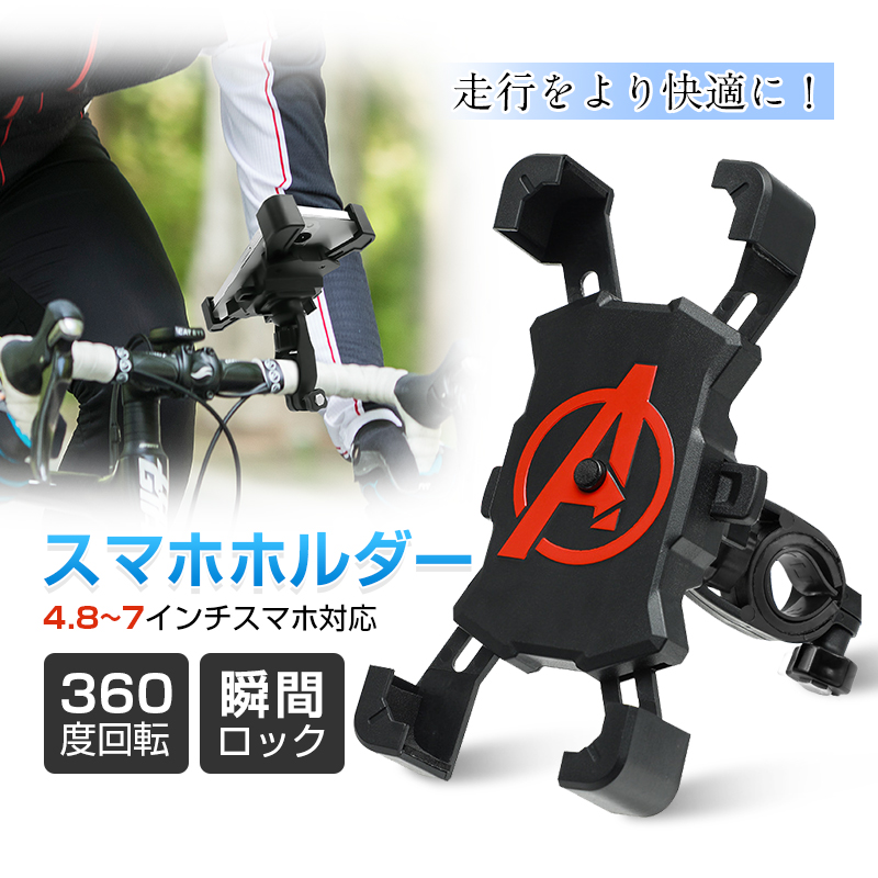 スマホホルダー 4.8~7インチのスマホ対応 簡単装着 工具不要 自転車用 バイク用 スマホスタンド 車載ホルダー クイックホールド スタンド 強力固定 スマホロック