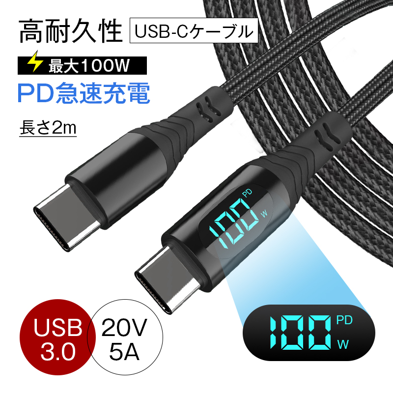 iPhone17ケーブル Type-C to Type-Cケーブル 2m耐摩擦 iPhone16 17Pro Air 17ProMax デジタル電力表示 C-TO-C充電コード 時短充電【PL保険加入済み製品・安心】
