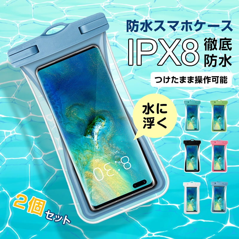 防水スマホケース 2枚セット 水に浮く エアクッション付き 防水ケース 防水バッグ TPU タッチ可能 IPX8仕様 30m深水対応 7.2インチまで多機種対応 90日保証付き