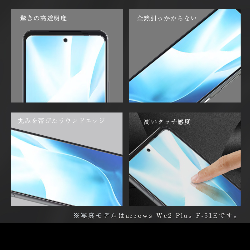 【2枚セット】arrows We2 Plus 強化ガラスフィルム クリア 液晶保護シート 高透過率 10H硬度 防汚コーティング 指紋軽減 高感度タッチ 厳選素材 装着感ゼロ お得