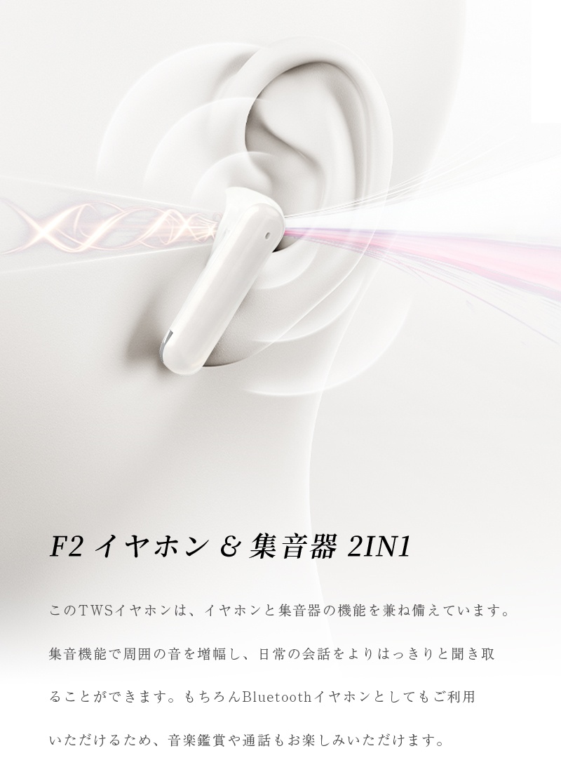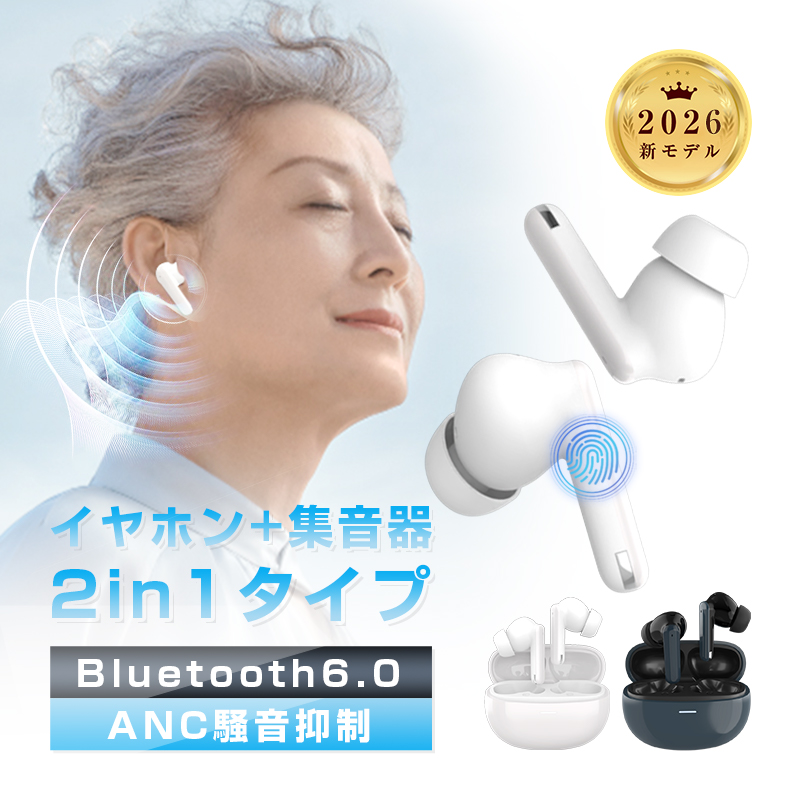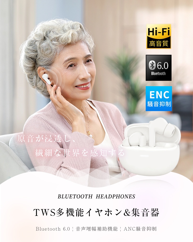 【クーポン割引で3,984円】ワイヤレスイヤホン型集音器 高齢者 音声拡聴器5段階調音 Bluetooth6.0 遅延ゼロ HiFi高音質 マイク内蔵【PL保険加入済み製品・安心】