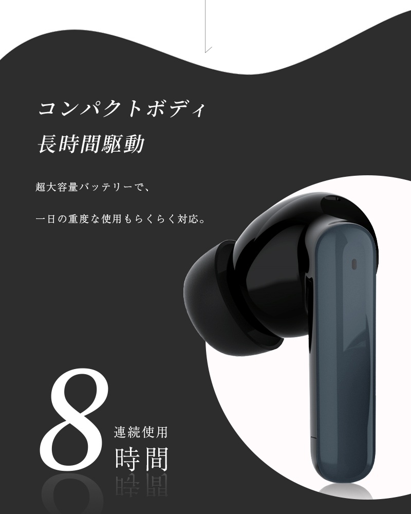 9、ソフトシリコン製イヤーピースで快適に装着できる。