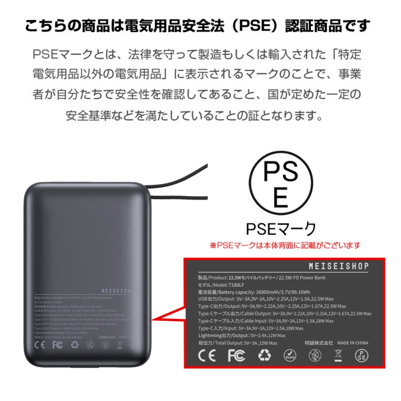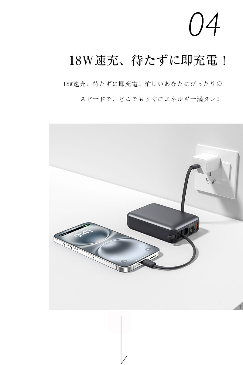 モバイルバッテリー 26800mAh大容量【2025年モデル】ケーブル内蔵 iPhone17充電 PD 3.0 22.5W急速充電 QC3.0高速 防災電源 PSE認証【PL保険加入済み製品・安心】