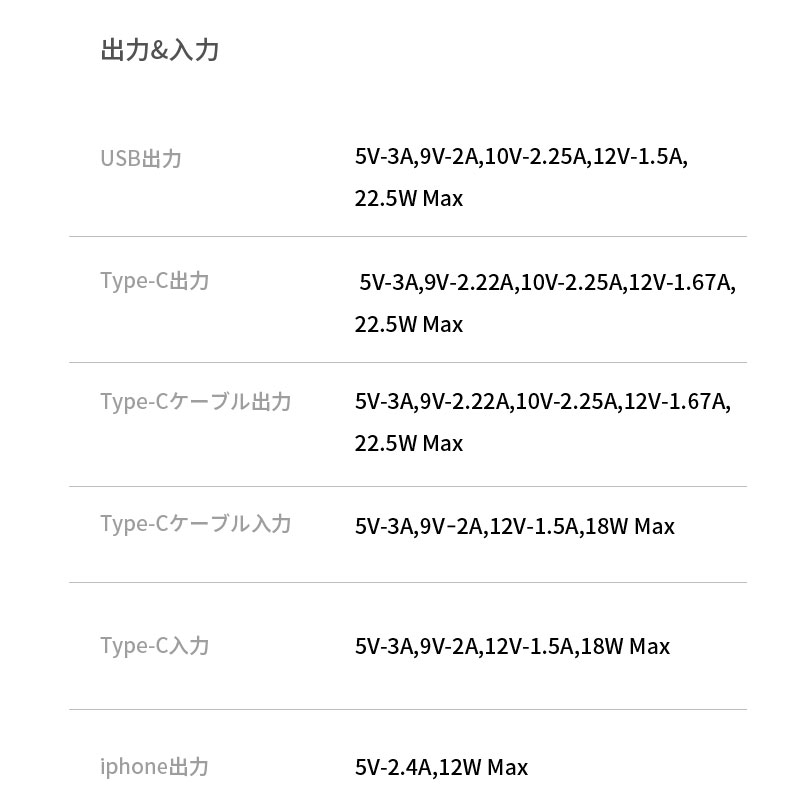 PD 3.0とQC3.0などの急速充電プロトコルに対応します。ほぼすべての設備に対して最適かつ最速の充電スピードを実現しました。(*接続した端末を自動で認識して、それぞれの端末に最適な電流を流してくれる技術が付いています。)