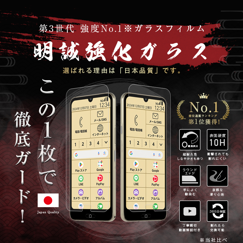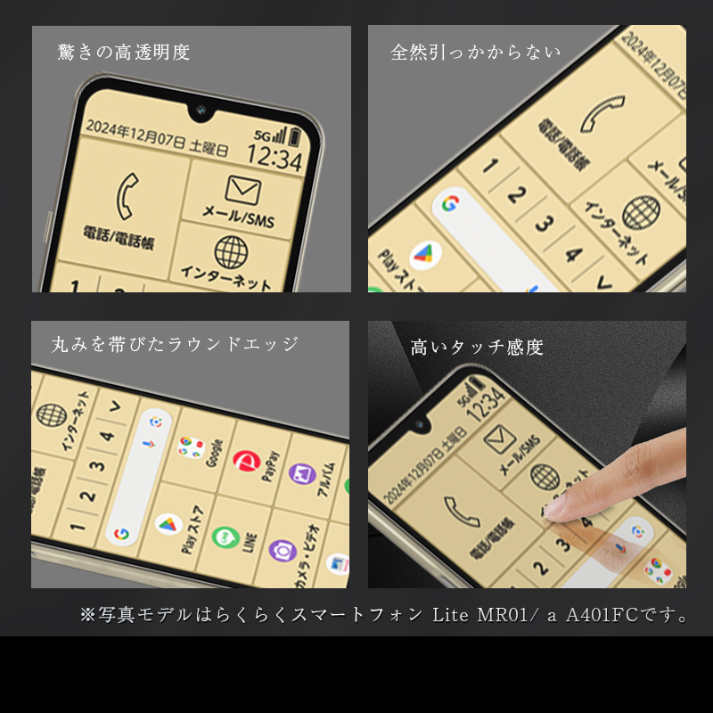 【2枚セット】らくらくスマートフォン Lite / a 強化ガラス保護フィルム A401FC / MR01 液晶画面保護シート 薄型 表面硬度10H 耐衝撃 傷防止 気泡ゼロ 飛散防止