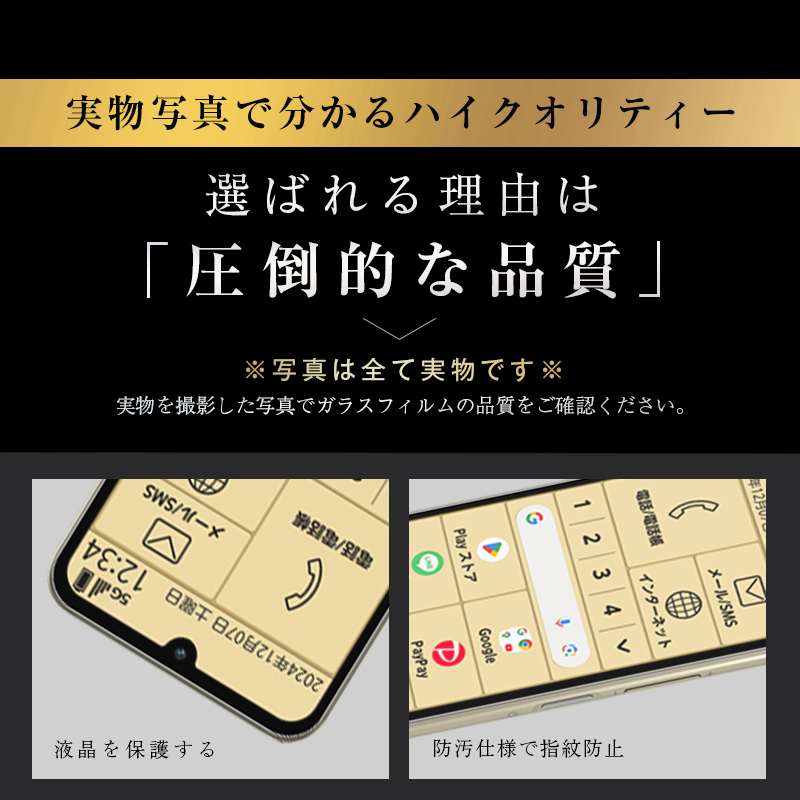 指紋防止加工により、指紋が自立だずぶき取りが簡単。