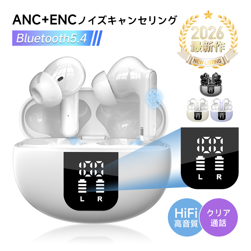 完全ワイヤレスイヤホン Bluetooth5.4 TWSイヤホン 【2026最新】 カナル型 音漏れ抑制 Hi-Fi高音質 ハンズフリー通話 コンパクト【PL保険加入済み製品・安心】