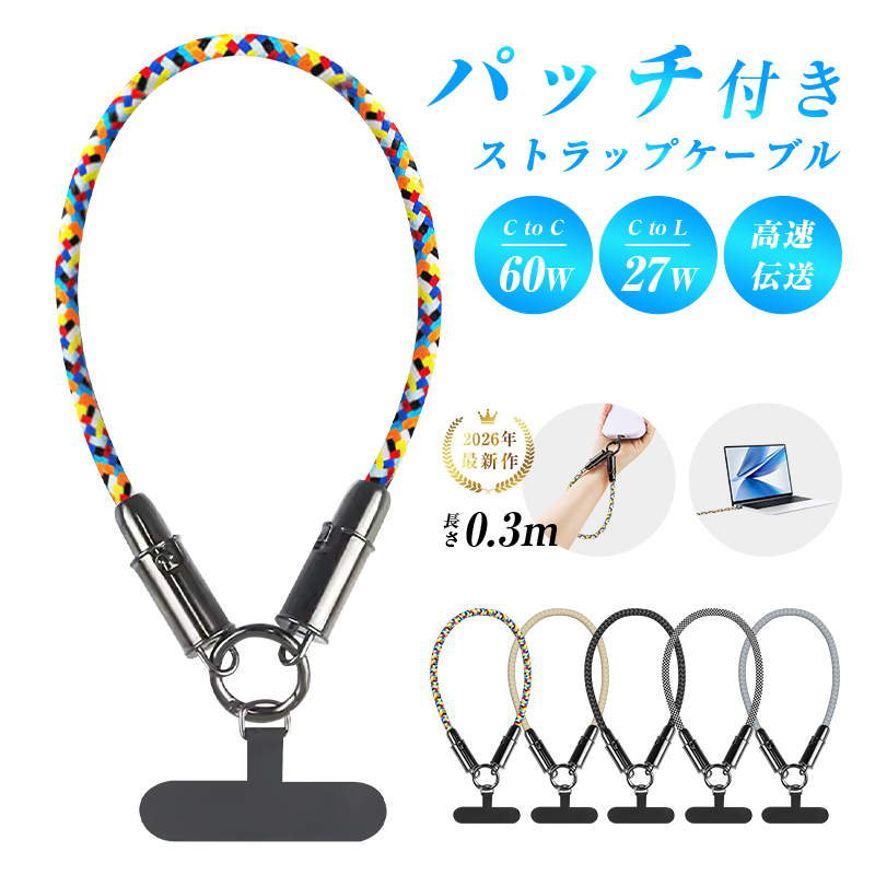 充電ケーブル スマホストラップ Type-C to Type-C PD対応 60W iPhone17/16 急速充電 Type-C to iPhone 長さ30cm ナイロン編み 軽量【PL保険加入済み製品・安心】