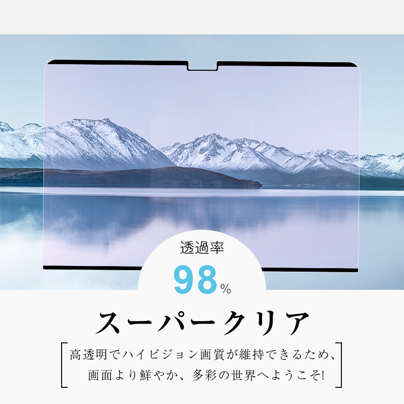 高品質な素材(しなやかなPET)を使用しており、非常に高い透明度で、フィルムの存在を感じさせず、貼り付けたままでも画面本来の鮮やかな色合いや細部の美しさをそのままお楽しみいただけます。