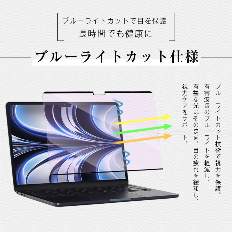 15インチ MacBook Air(M2.2023/M3/M4)対応 ブルーライトカット 液晶保護PETフィルム 磁気吸着式 視力保護 耐衝撃 傷防止 0.3mm超薄型 Appleノートパソコン用