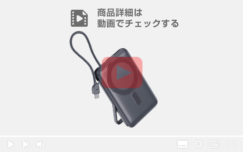 本体に収納式のType-Cケーブルを内蔵し、必要な時に引っ張り出して充電に使用できます。さらに、内蔵のケーブルはストラップとしても活用可能。持ち運びの便利さと紛失防止を両立した実用的なデザインです。