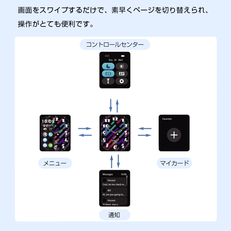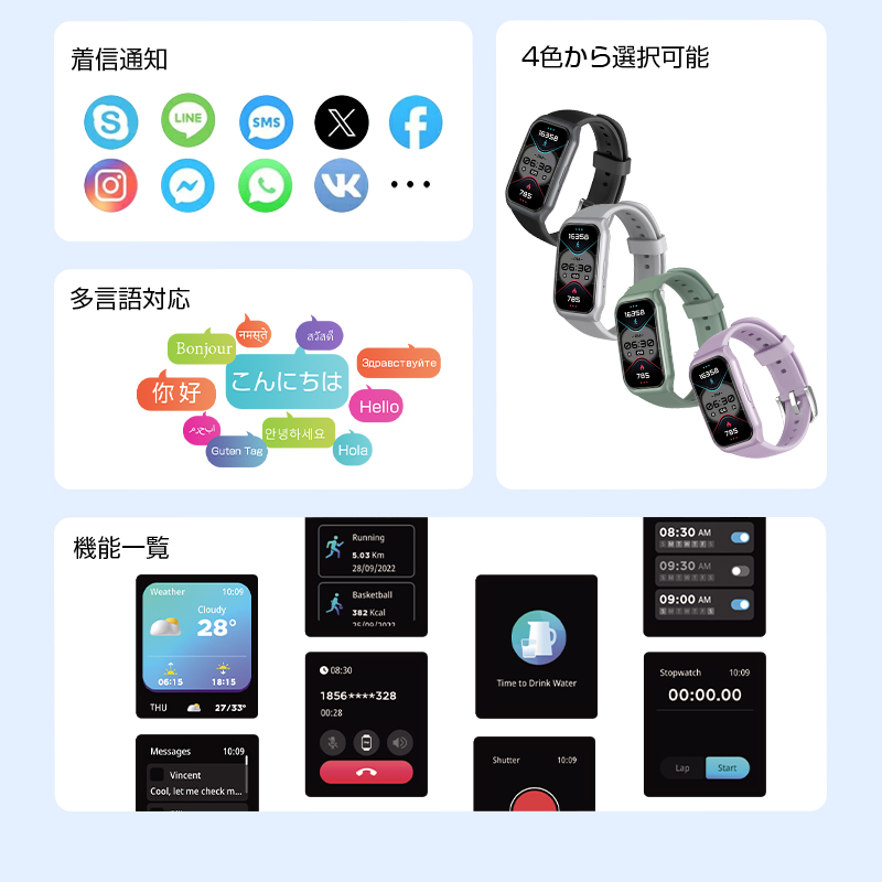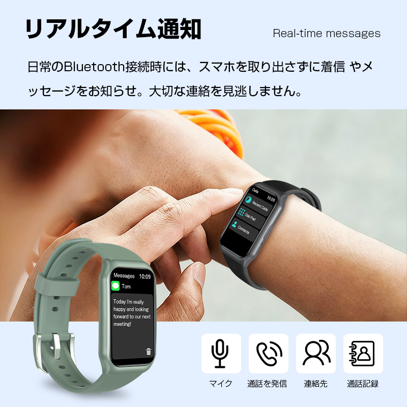 メールや電話、SNSの通知までスマホを取り出さずに確認できる「通知機能」が搭載。アプリのプッシュ通知やメッセージの内容を手首で確認することが可能で、重要な連絡の見逃しを防ぐことにも繋がります。