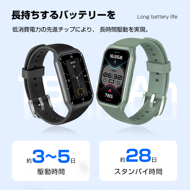 スマートウォッチ本体にスピーカーとマイクが搭載され、スマホと接続すれば、スマホを取り出さず、スマートウォッチで電話を発信したり、直接通話したりすることができます。