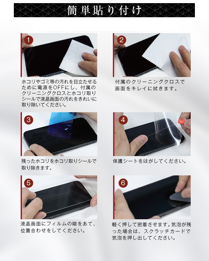 ※貼る前には必ず液晶表面のゴミやホコリをよくとってください。