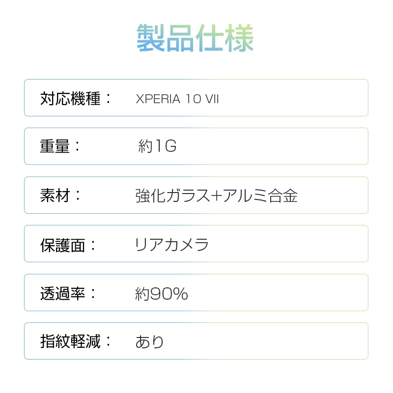 Xperia 10 VII カメラ保護フィルム SO-52F docomo 強化ガラスフィルム 傷防止 SOG16 au アルミ合金枠 硬度10H 耐衝撃 Sony A502SO SoftBank 高透過率 XQ-FE44