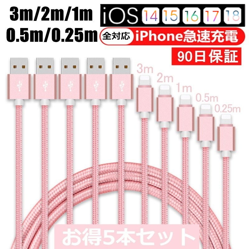 【5本セット】iPhoneケーブル 長さ 0.25m+0.5m+1m+2m+3m iPhone14 13 12 11 X XS max XR X 急速充電 データ伝送 iPad用USBケーブル【PL保険加入済み製品・安心】