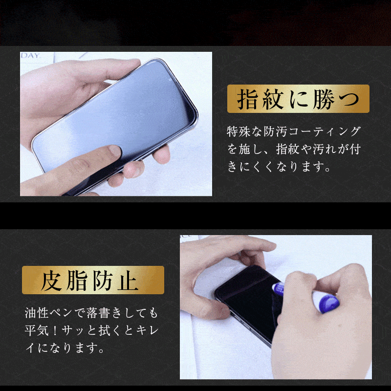 指紋防止加工により、指紋が自立だずぶき取りが簡単。