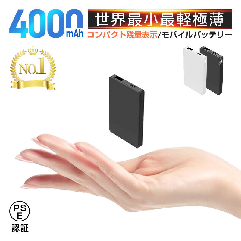 4000mA モバイルバッテリー 大容量 コンパクト 防災電源 世界最小最軽 超薄型 iPhone17充電 軽量 出力2ポート 急速充電 携帯充電器【PL保険加入済み製品・安心】