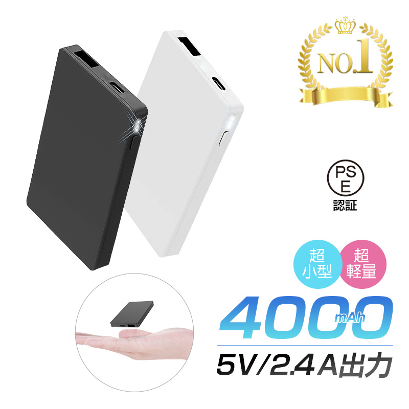 モバイルバッテリー 小型 薄型 大容量 4000mAh コンパクト 防災電源 充電器 軽量 出力2ポート iPhone17充電 急速充電 携帯充電器【PL保険加入済み製品・安心】