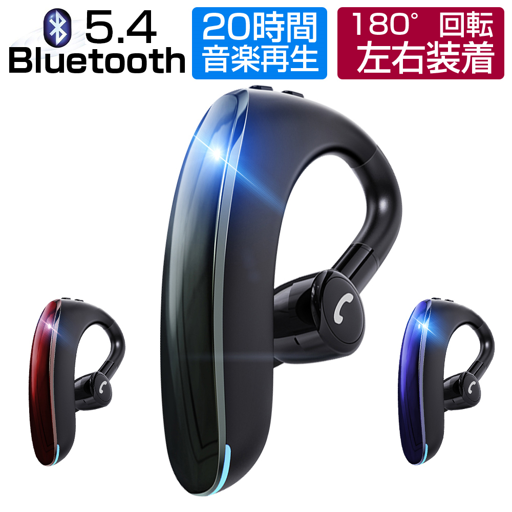 ワイヤレスイヤホン Bluetooth5.4 左右耳通用 ブルートゥース ヘッドセット 耳掛け型 HiFi高音質 ハンズフリー通話 180°回転【PL保険加入済み製品・安心】