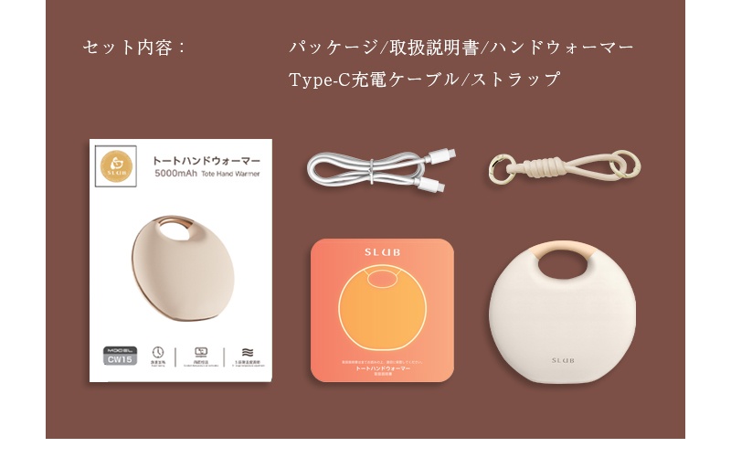 パッケージ内容:電気カイロ本体/Type-C充電ケーブル/ストラップ/日本語取扱説明書
