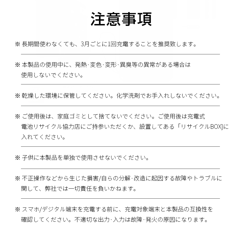 過充電防止、過放電防止、過電流防止、短絡保護など、複数の安全保護機能を備え、安心してご使用いただけます。