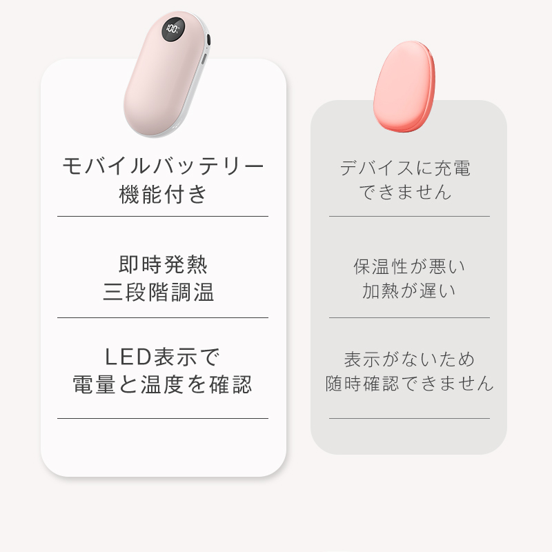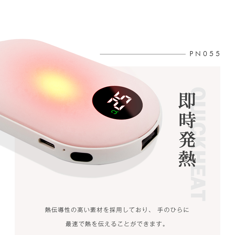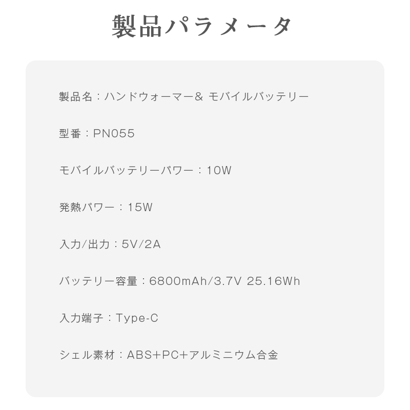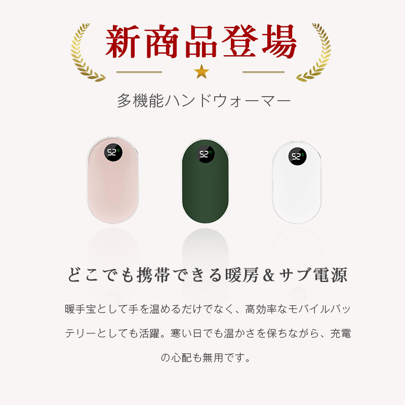 冬の寒さ対策とスマートフォンのバッテリー切れを同時に解消する、充電式ハンドウォーマー&モバイルバッテリーです。この2in1デバイスは、6800mAhの大容量バッテリーを搭載し、暖かさと充電機能を兼ね備えた革新的な商品です。