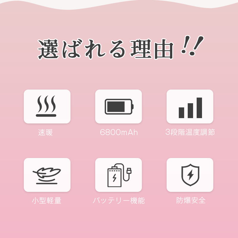 電気カイロ 充電式 6800mAh モバイルバッテリー 繰り返し使える 小型軽量 冬のギフト 寒さ対策 省エネ 長時間使用 贈り物 PSE認証【PL保険加入済み製品・安心】