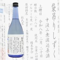 「大吟醸 袋吊り」とは、モロミを袋で吊るし、一切圧力をかけず自然に滴り落ちる雫だけを集めたお酒と、中汲みを合わせたごく少量しかとれない貴重なお酒です。