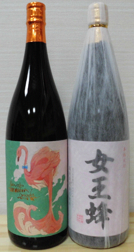 フラミンゴオレンジ1.8L、女王蜂1.8Lフレーバー系の代表焼酎。安田杜氏の逸品。全国の極少数のこだわり焼酎店でも僅かの入荷です。フラミンゴオレンジ(フレーバー系の代表焼酎)と女王蜂(黄麹の代表焼酎)極少数のセットですので早めにお買い求めください。