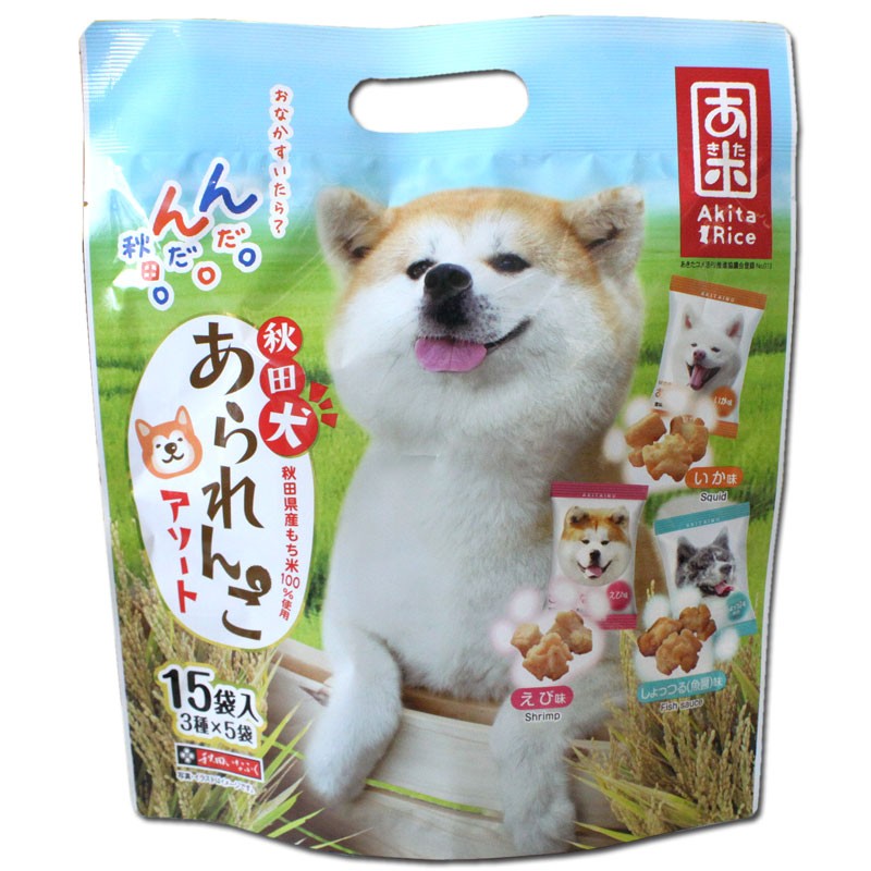 秋田犬あられんこ・アソート しょっつる味 えび味 いか味 15袋入(3種×各5袋)秋田犬 あられ 和菓子 洋菓子 せんべい 米菓