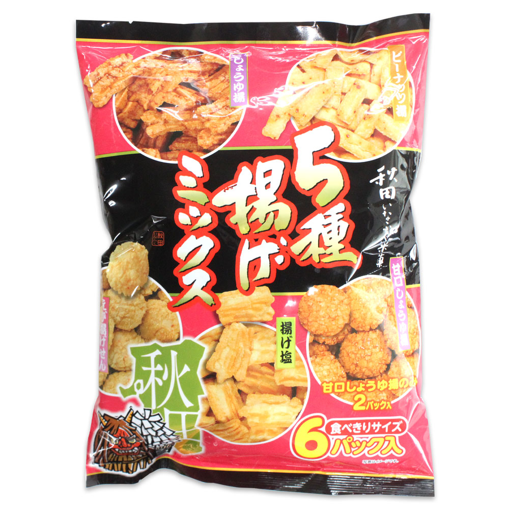 【秋田いなふく米菓】5種揚げミックス 188g [食べきりサイズ6パック入]秋田 あきた せんべい 米菓 おやつ お土産 手土産 みやげ 限定 ご当地