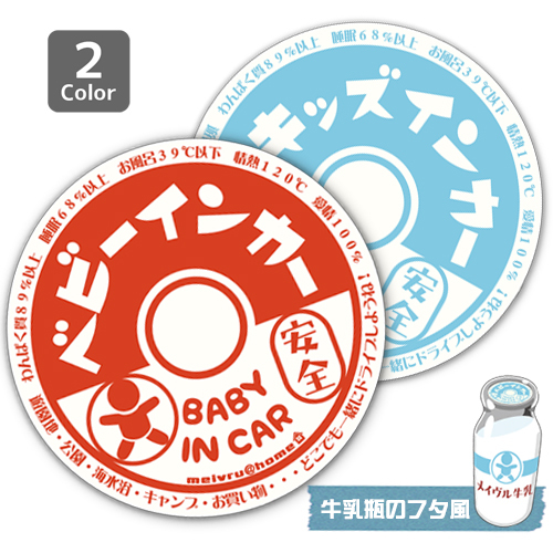ベビーインカー BABY IN CAR ステッカー KIDS IN CAR babyincar 赤ちゃんが乗ってます 子どもが乗っています 全4タイプ(ステッカータイプ/牛乳瓶ふた風)