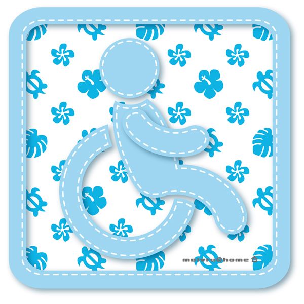 メール便送料無料 車椅子マーク 身障者 ステッカー 車いす 車イス 福祉車両 (ステッカータイプ/車椅子 ハワイアン柄マリン)