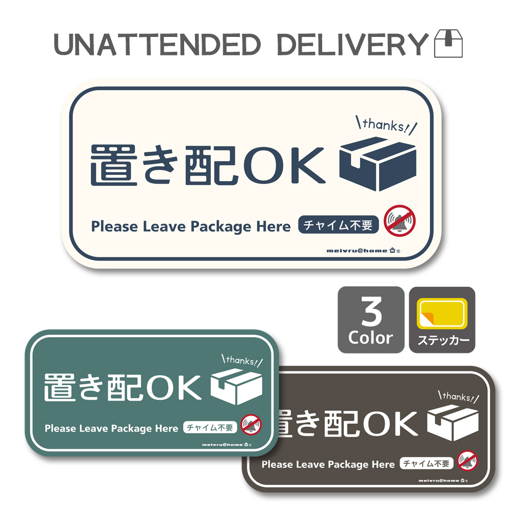 メール便送料無料 置き配 ステッカー チャイム不要 置き配OK 宅配ボックス 玄関前 再配達防止 かわいい おしゃれ(ステッカータイプ/シンプル)