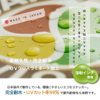 ●耐水・耐候性の高い材質シートをベースに、溶剤インク印刷・UVカット・グロスラミネート加工。(日本製)