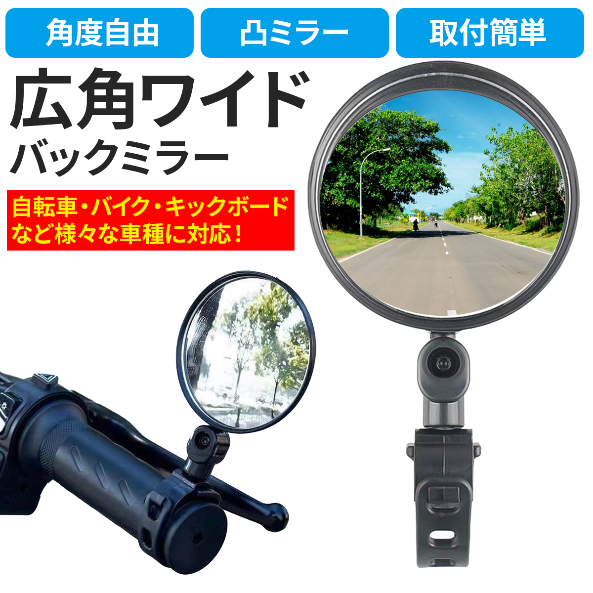 ・広角 ワイド 自転車 バックミラー サイドミラー