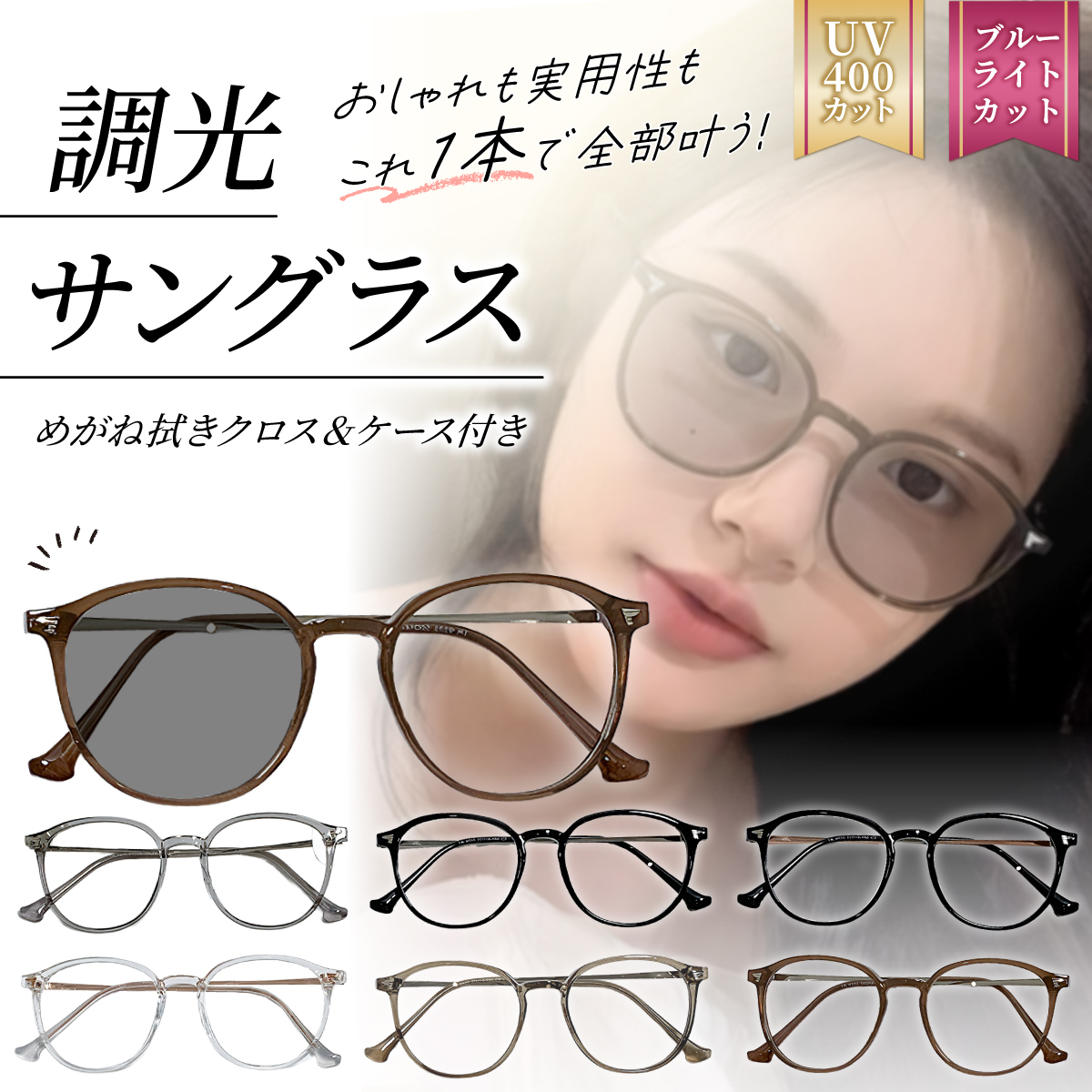 調光サングラス レディース ボストン UVカット ブルーライトカット かわいい サングラス 調光メガネ 調光レンズ