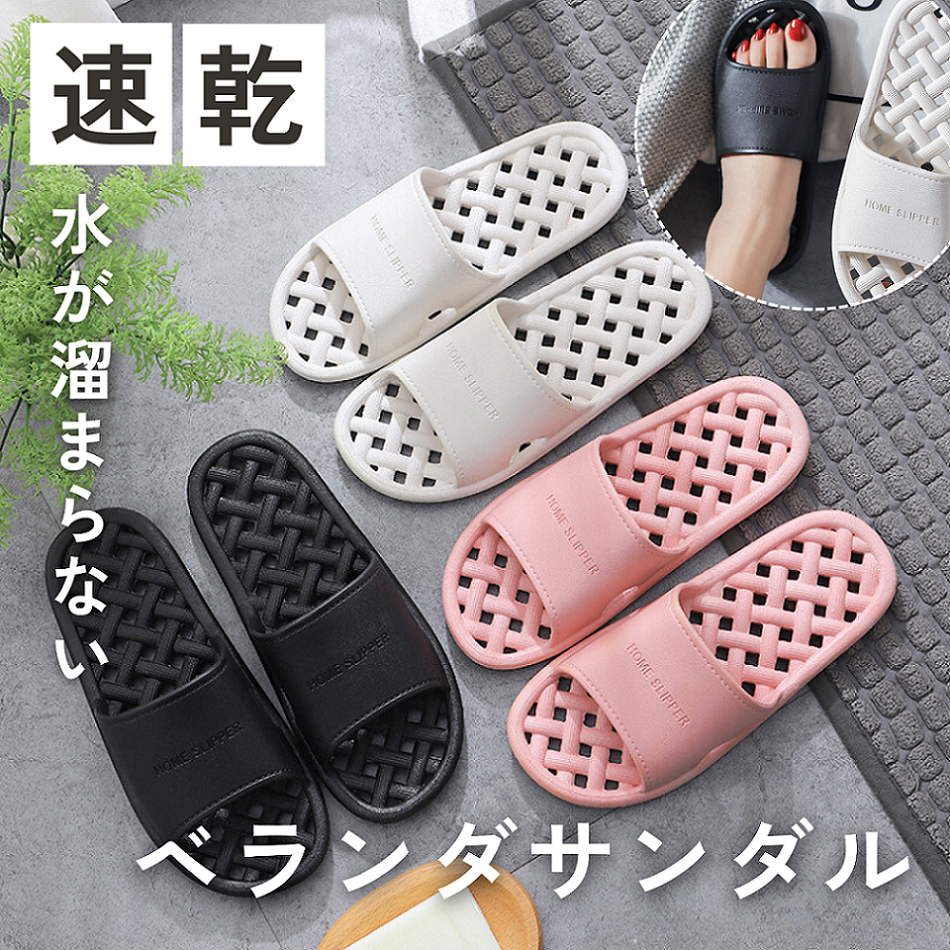 雨で濡れても水が溜まらない!ベランダサンダルです