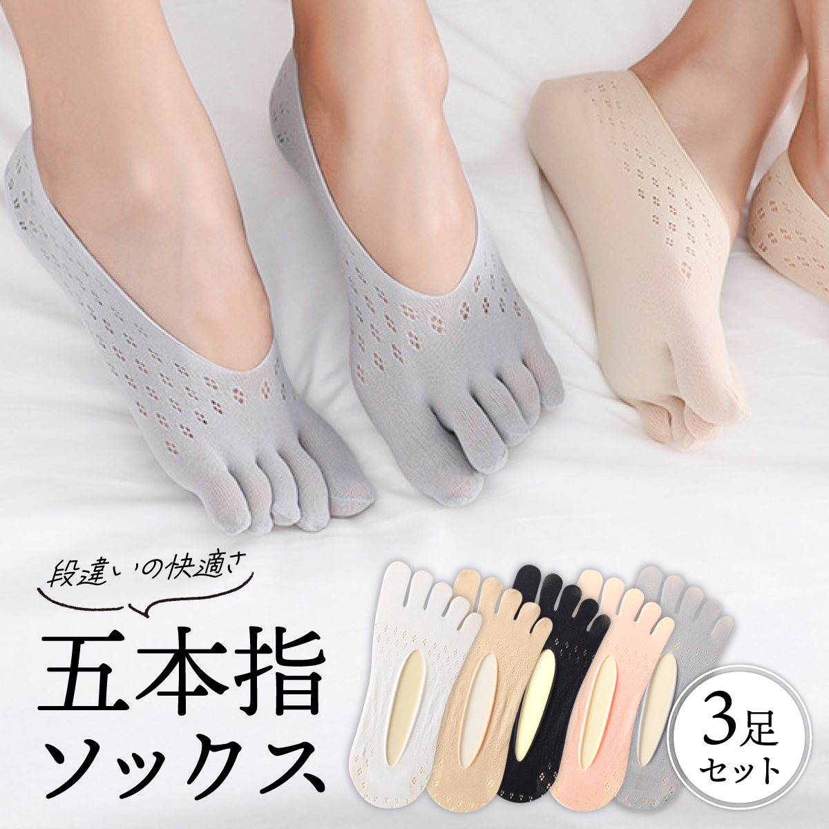 五本指ソックス 3足セット レディース 靴下 フットカバー 5本指靴下 インナー かわいい 滑り止め 黒 ベージュ 白 レース 浅め ナイロン クロス 見せる