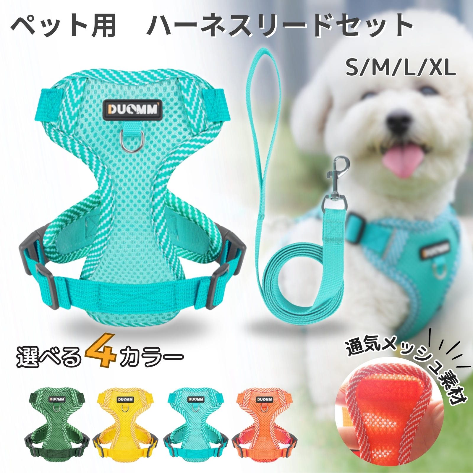 犬ハーネスリードセット 抜けない 着脱簡単 メッシュ素材 通気性抜群 蒸れない 春夏用最適 4カラー