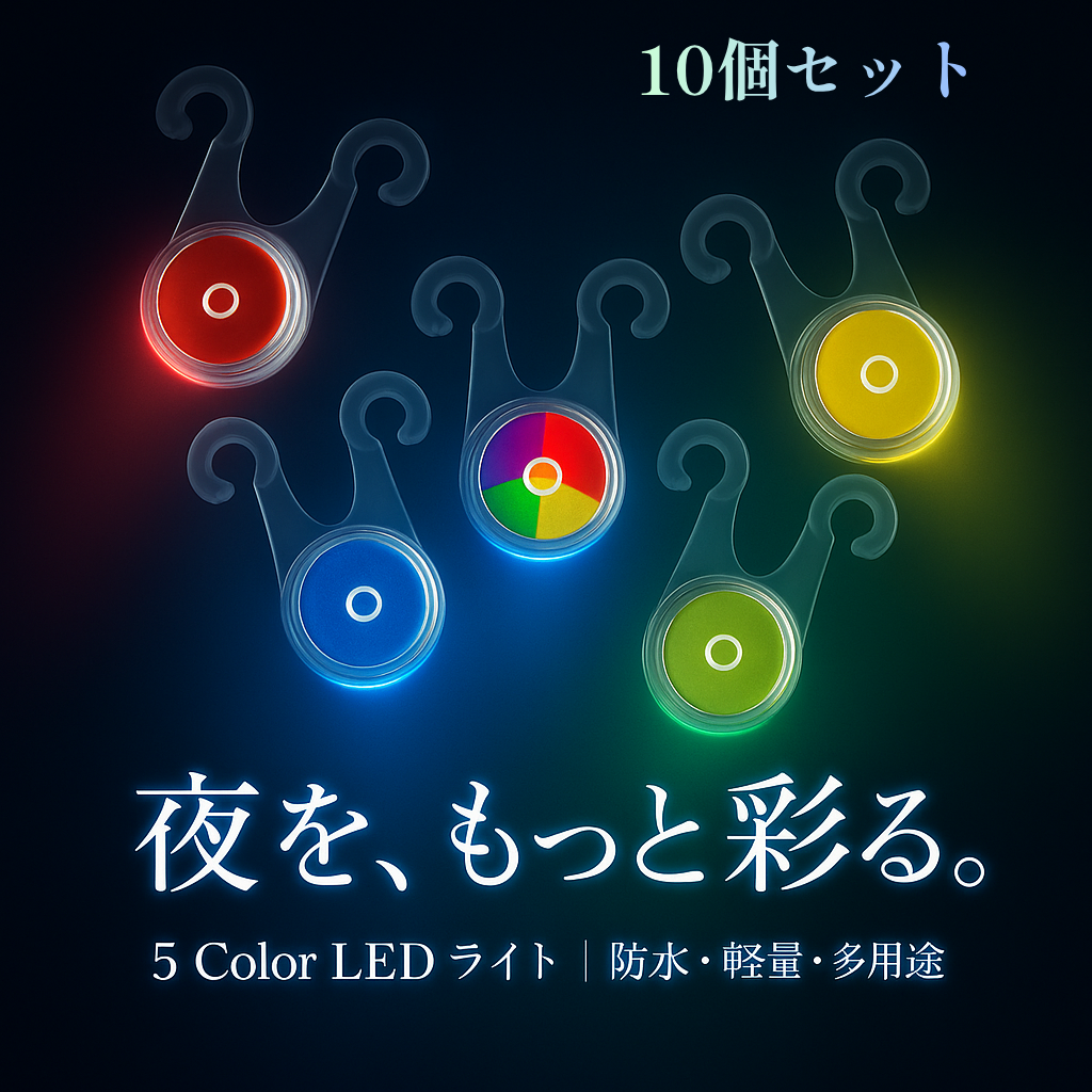 テントやタープのロープに取り付けて使える「ロープライト」10個セット