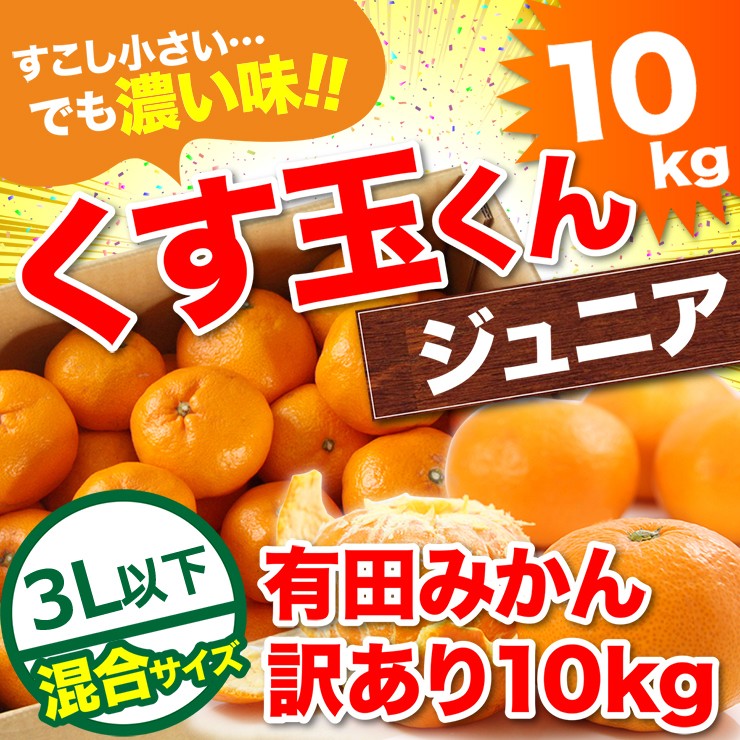 訳あり みかん 送料無料 10kg くす玉くんジュニア 直送 安い 有田 みかん 蜜柑 産地直送 自宅用 小粒 箱買い 糖度 10キロ 小さい 小さめ 和歌山県産 安い 甘い