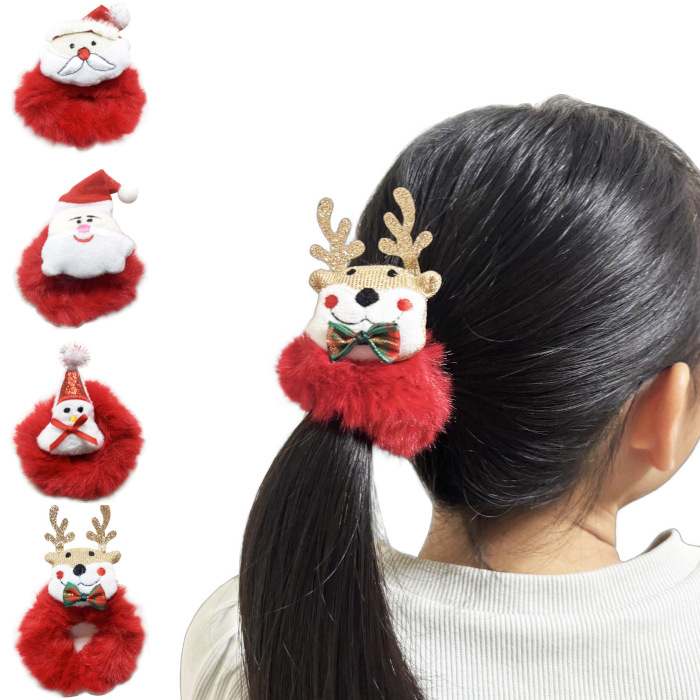 赤いフワフワファーのシュシュは、サンタやスノーマン、トナカイの可愛いモチーフが特徴です。クッション入りでプニプニした触感が楽しいアクセントになります。