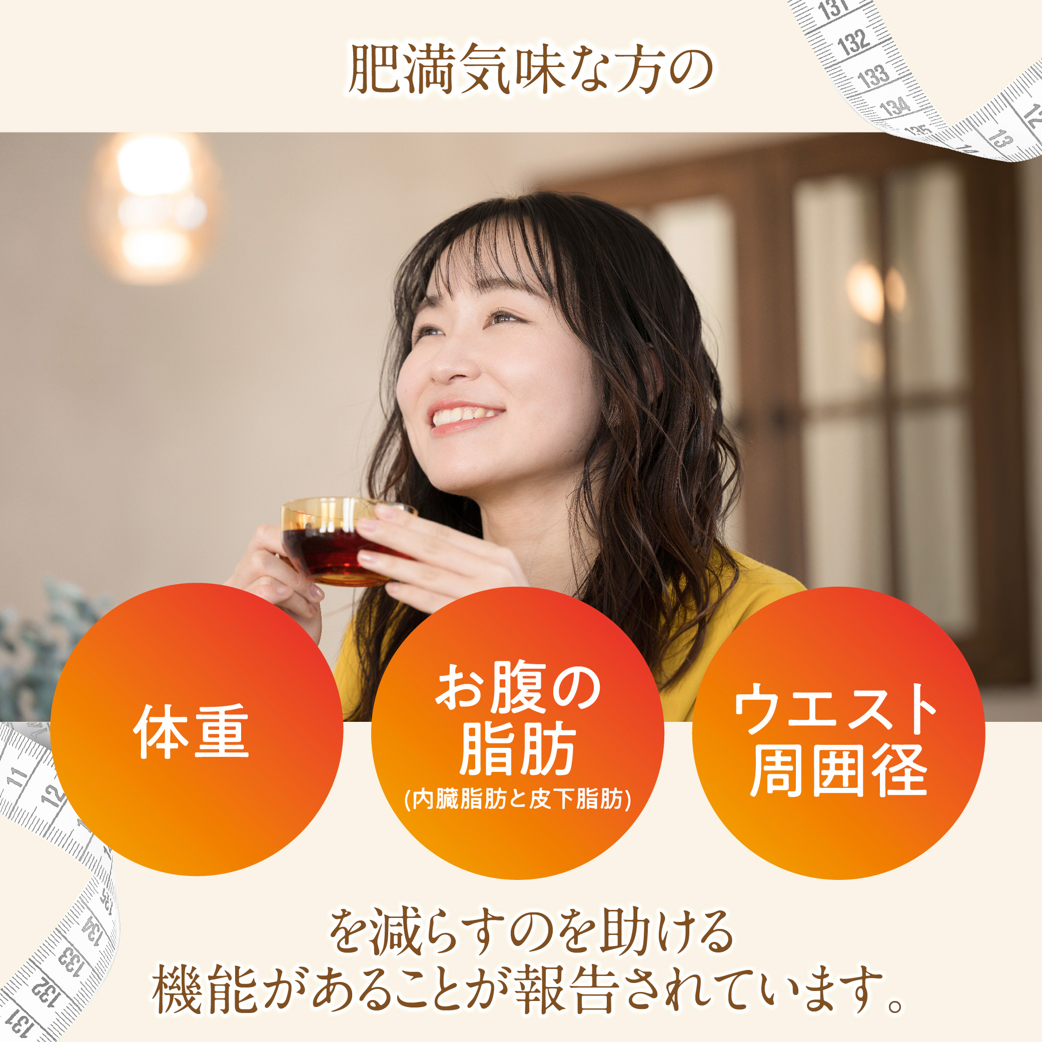 毎日の一杯で気になるおなかまわり※にアプローチ ※肥満気味なウエスト周囲径