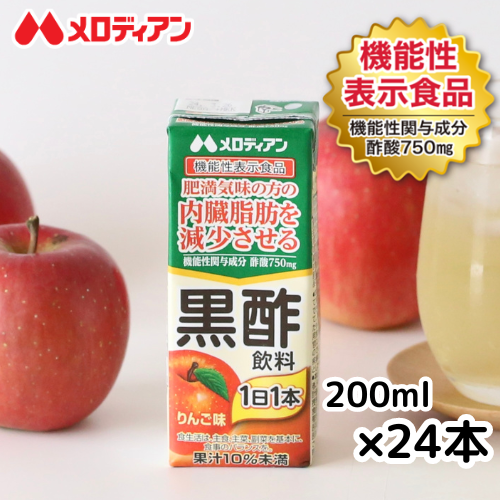 爆買 黒酢 黒酢ドリンク 黒酢飲料 飲む酢 りんご味 機能性表示食品 内臓脂肪が気になる方に 200ml×24本 送料無料 メロディアン公式