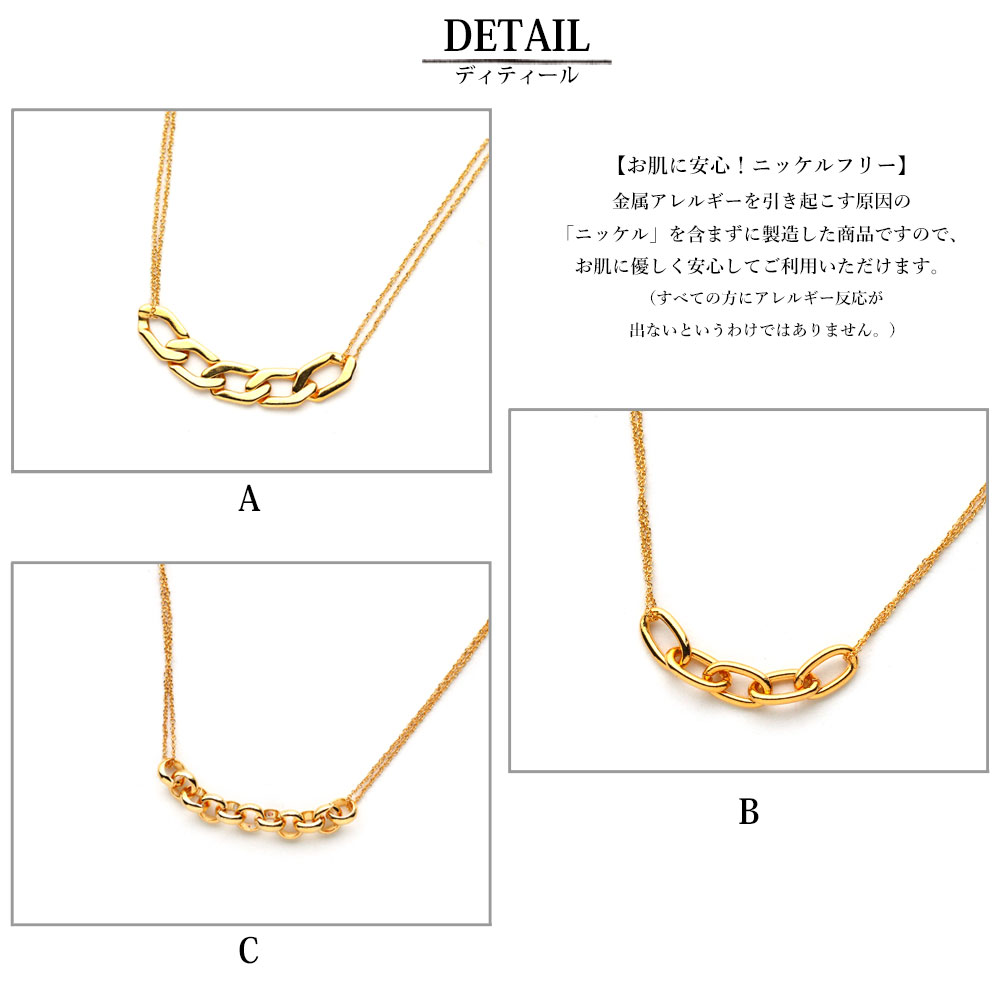 サイズ感で輝きの異なるチェーンデザインのコントラストが、動きに合わせて輝きます。