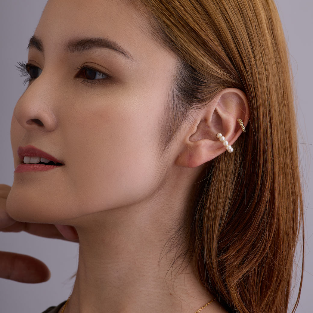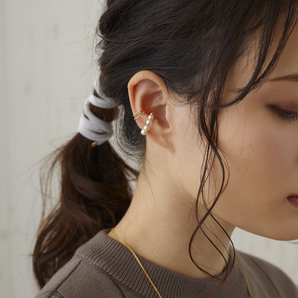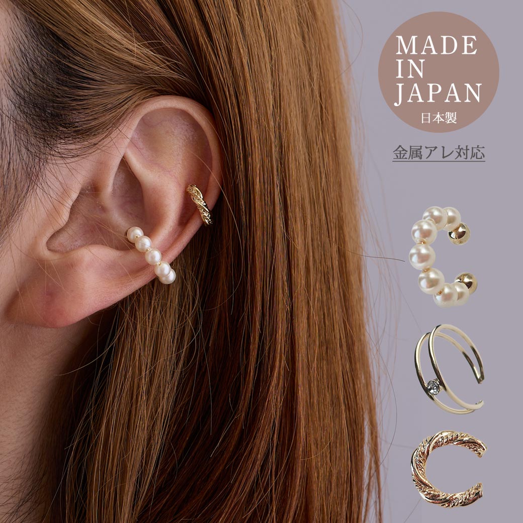 【特徴】パール・ツイスト・ストーンのデザインが楽しめる、日本製イヤーカフセット。金属アレルギー対応で優しいつけ心地