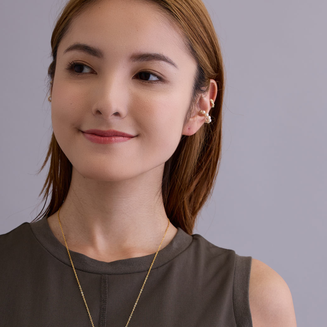 手持ちのイヤーアクセと重ねても、こなれ感のあるスタイルに。