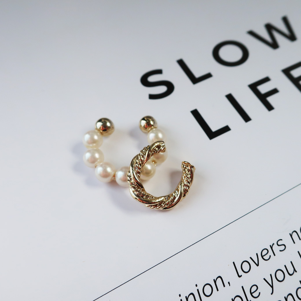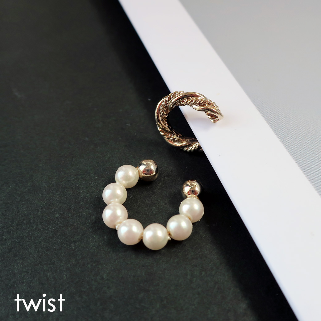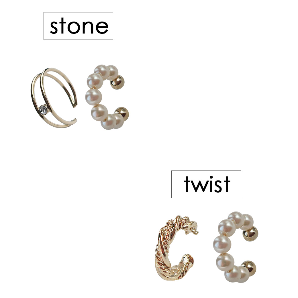 パール×ツイスト、またはストーンの2セットイヤーカフ。